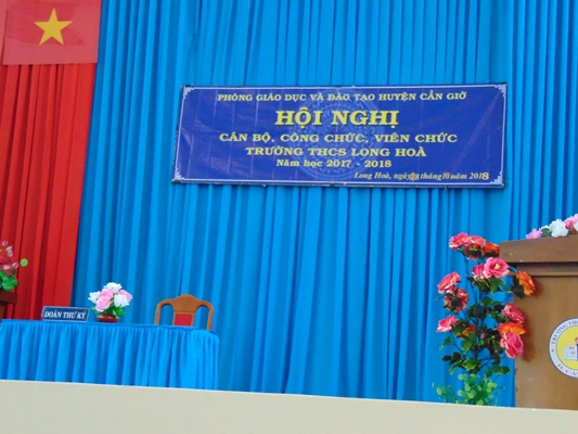 Thực hiện chỉ đạo của Phòng Giáo dục và Đào tạo huyện Cần Giờ, Hiệu trưởng và Chủ tịch Công đoàn Trường THCS Long Hòa đã phối hợp tổ chức Hội nghị CB-CC-VC năm học 2017-2018. Hội nghị được tiến hành theo trình tự từ Hội nghị cấp tổ, tổ chức hội nghị trả lời ý kiến đóng góp và tổ chức Hội nghị CB-CC-VC toàn thể vào ngày 28/10/2017. Hội nghị đã đánh giá việc thực hiện kế hoạch năm học 2016-2017, Nghị quyết Hội nghị CB-CC-VC năm học 2016-2017, báo cáo việc thực hiện Quy chế dân chủ, quy chế chi tiêu nội bộ, quy chế đối thoại,... và đề ra phương hướng nhiệm vụ năm học 2017-2018, lấy ý kiến xây dựng Quy chế chi tiêu nội bộ năm 2018,.... Hội nghị được viên chức, nhân viên thảo luận sôi nổi và thống nhất biểu quyết Nghị quyết Hội nghị năm học 2017-2018.